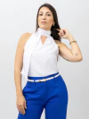 Elegante e sofisticada, a blusa social Kiara é a escolha perfeita para quem busca conforto sem abrir mão do estilo. O modelo muscle tee com gola alta ajustável traz um charmoso laço nas costas, adicionando um toque feminino ao design. O detalhe drapeado oferece uma textura delicada que eleva o visual. Disponível em várias cores, adapta-se facilmente a diferentes ocasiões, garantindo um look moderno e refinado.