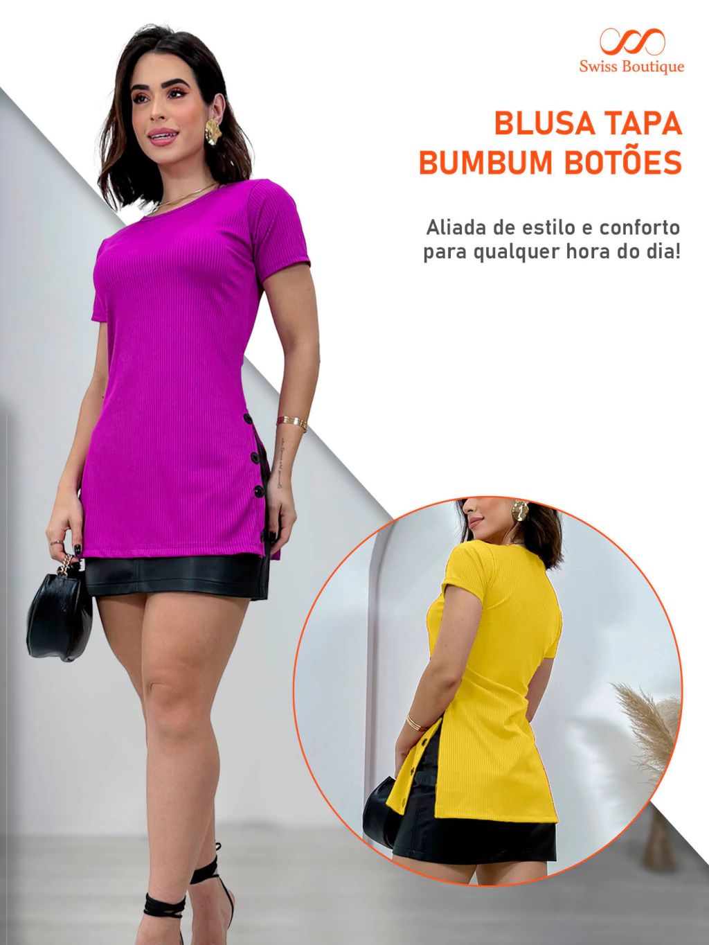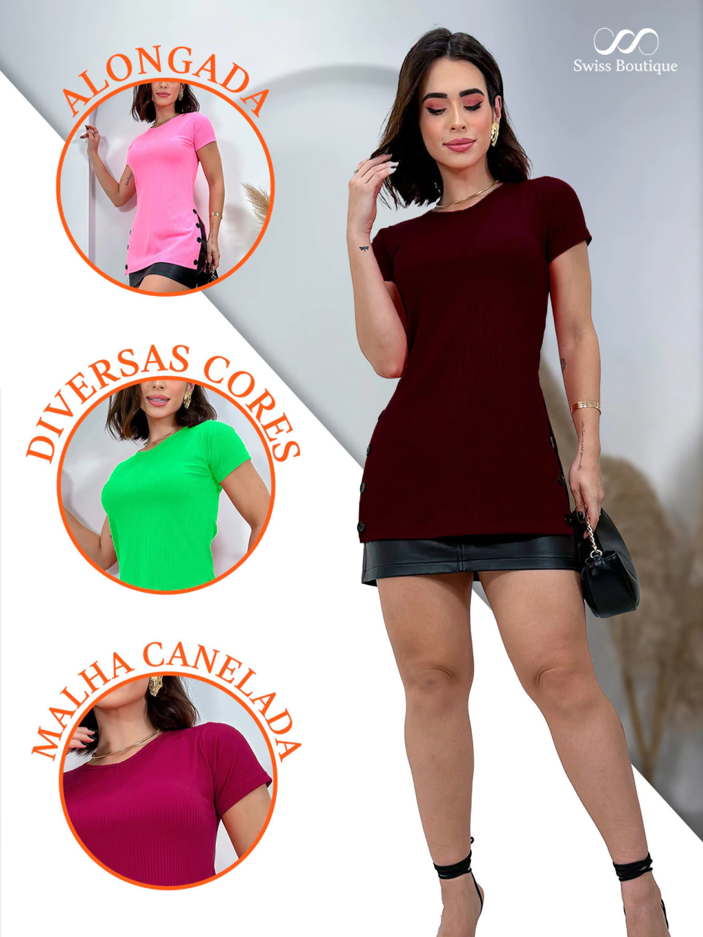 A blusa perfeita para quem ama praticidade com estilo. Feita em malha canelada encorpada, possui modelagem alongada que cobre o quadril e valoriza o corpo. Os botões laterais dão um toque moderno e criativo ao look. Ideal para compor produções casuais com conforto e atitude.
