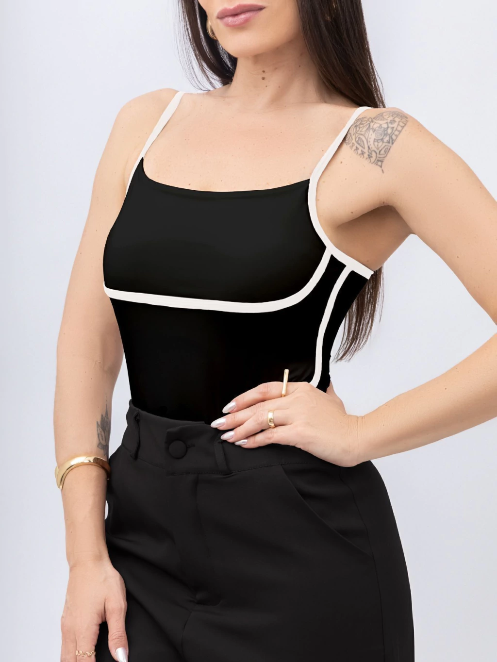 Body bicolor de alcinha confeccionado em suplex flexível e confortável. O contraste entre o tom off white e os detalhes em cor mais intensa traz modernidade e estilo. Sem bojo, valoriza o colo de forma natural e modela a cintura com caimento impecável. Uma peça versátil para compor looks casuais ou sofisticados.