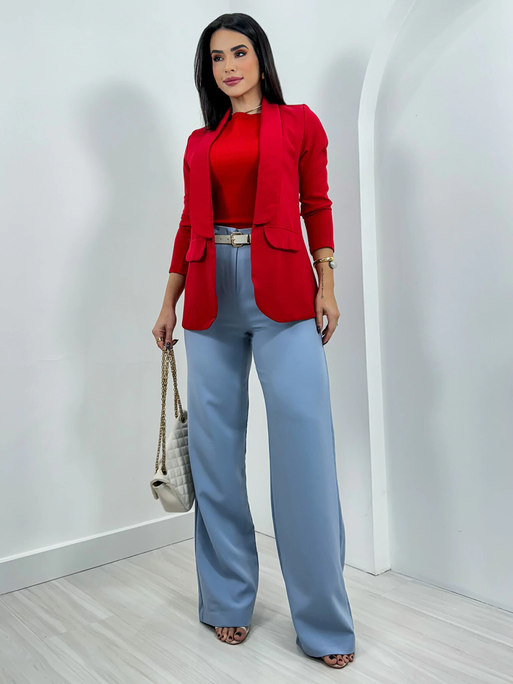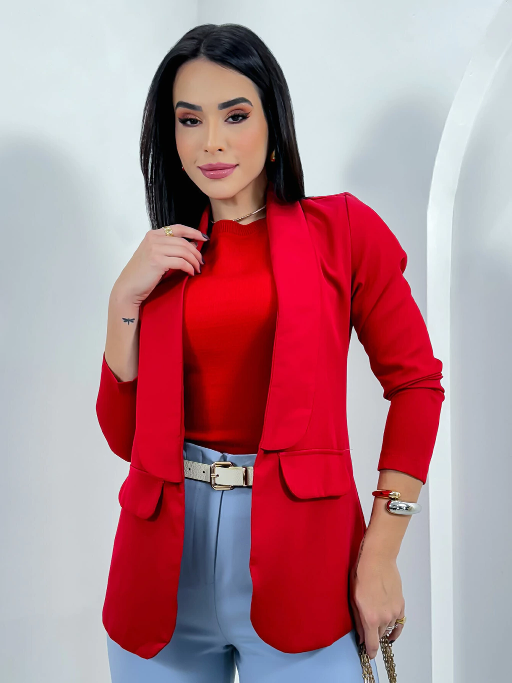 O Blazer Camila é a definição de elegância e sofisticação. Confeccionado em tecido premium com corte de alfaiataria, ele oferece um caimento impecável que valoriza qualquer silhueta. Ideal para compor looks formais e casuais, o Blazer Camila é versátil e se adapta perfeitamente a diversas ocasiões, desde reuniões de trabalho até eventos sociais. Disponível em várias cores e tamanhos, é a peça chave para quem busca um visual refinado e moderno. Combine com calças de alfaiataria ou jeans para um estilo que é puro poder e confiança.