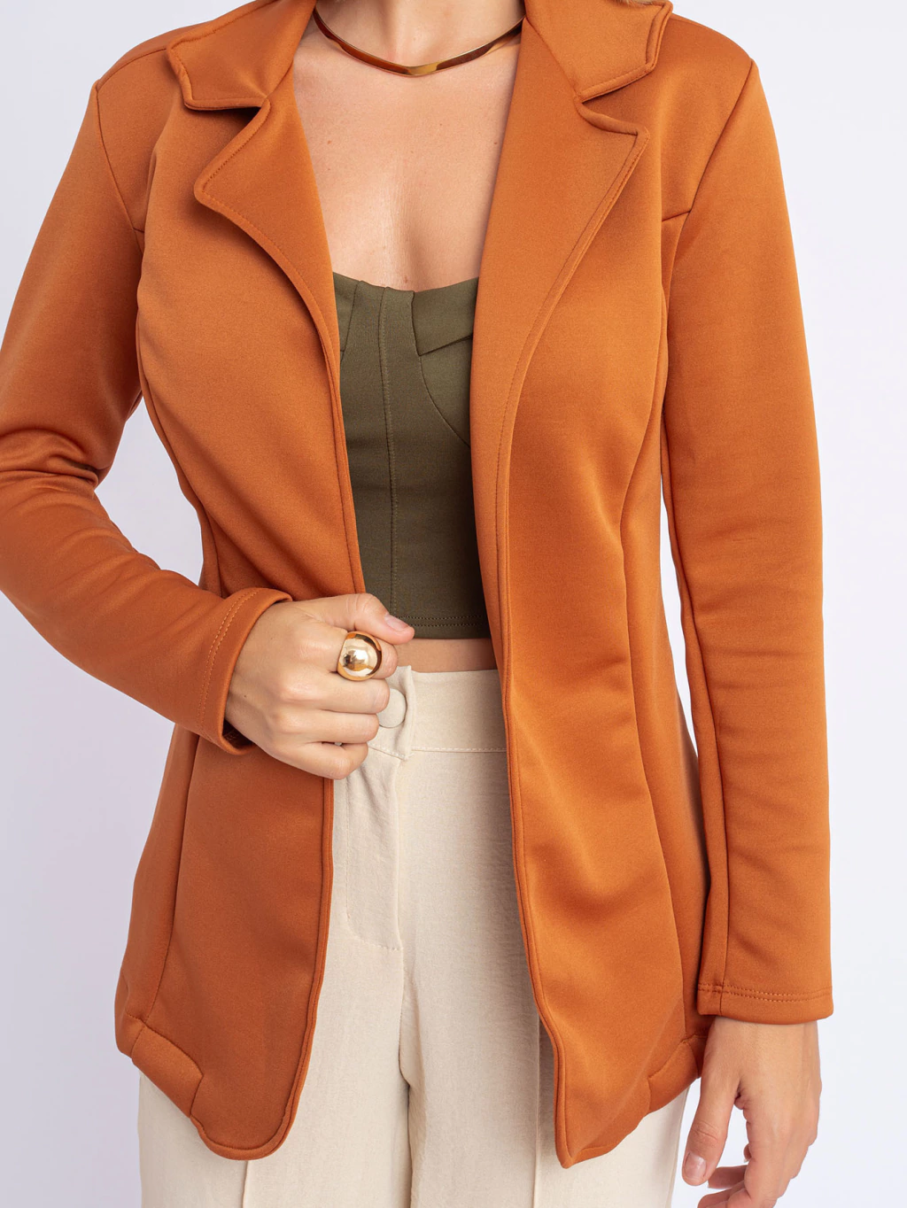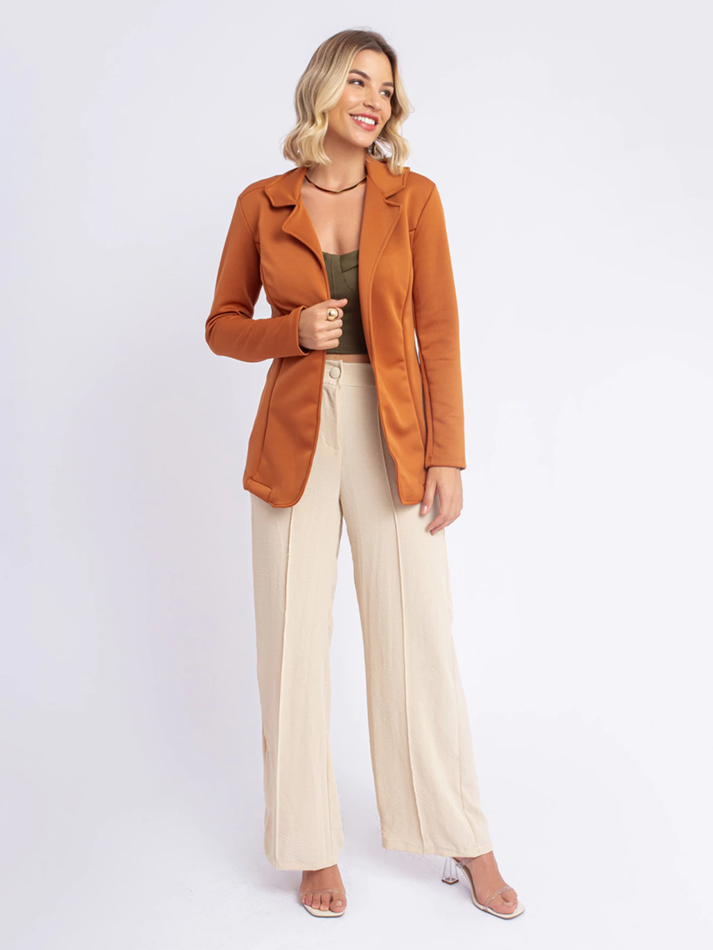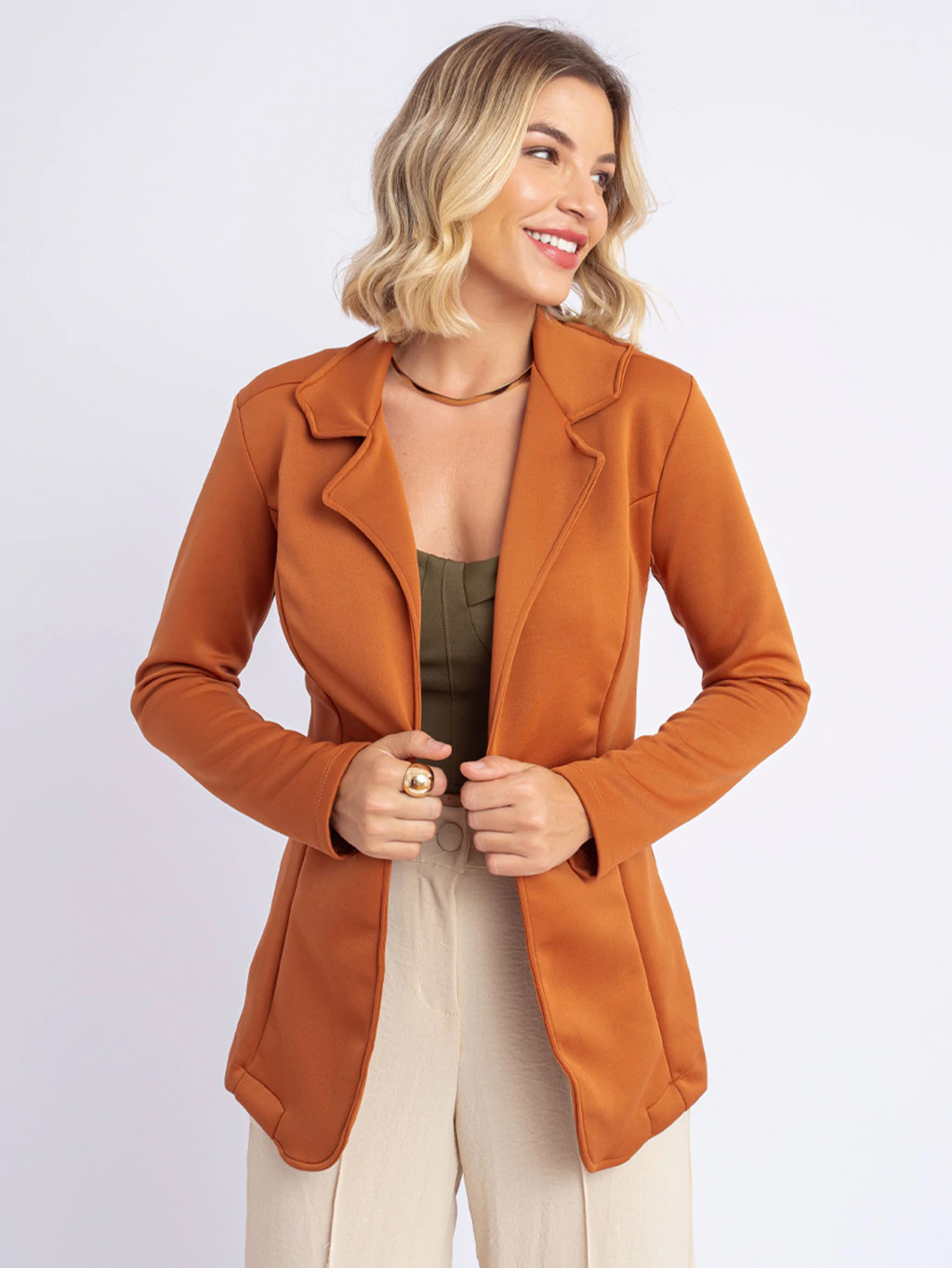 Este blazer de Neoprene alongado oferece um toque moderno e sofisticado ao clássico blazer. Com sua modelagem acinturada, ele destaca a silhueta, garantindo um look elegante e bem estruturado. Disponível em várias cores, adapta-se a diversas ocasiões, desde reuniões de negócios até eventos sociais. Uma peça-chave para quem busca estilo e versatilidade no guarda-roupa.