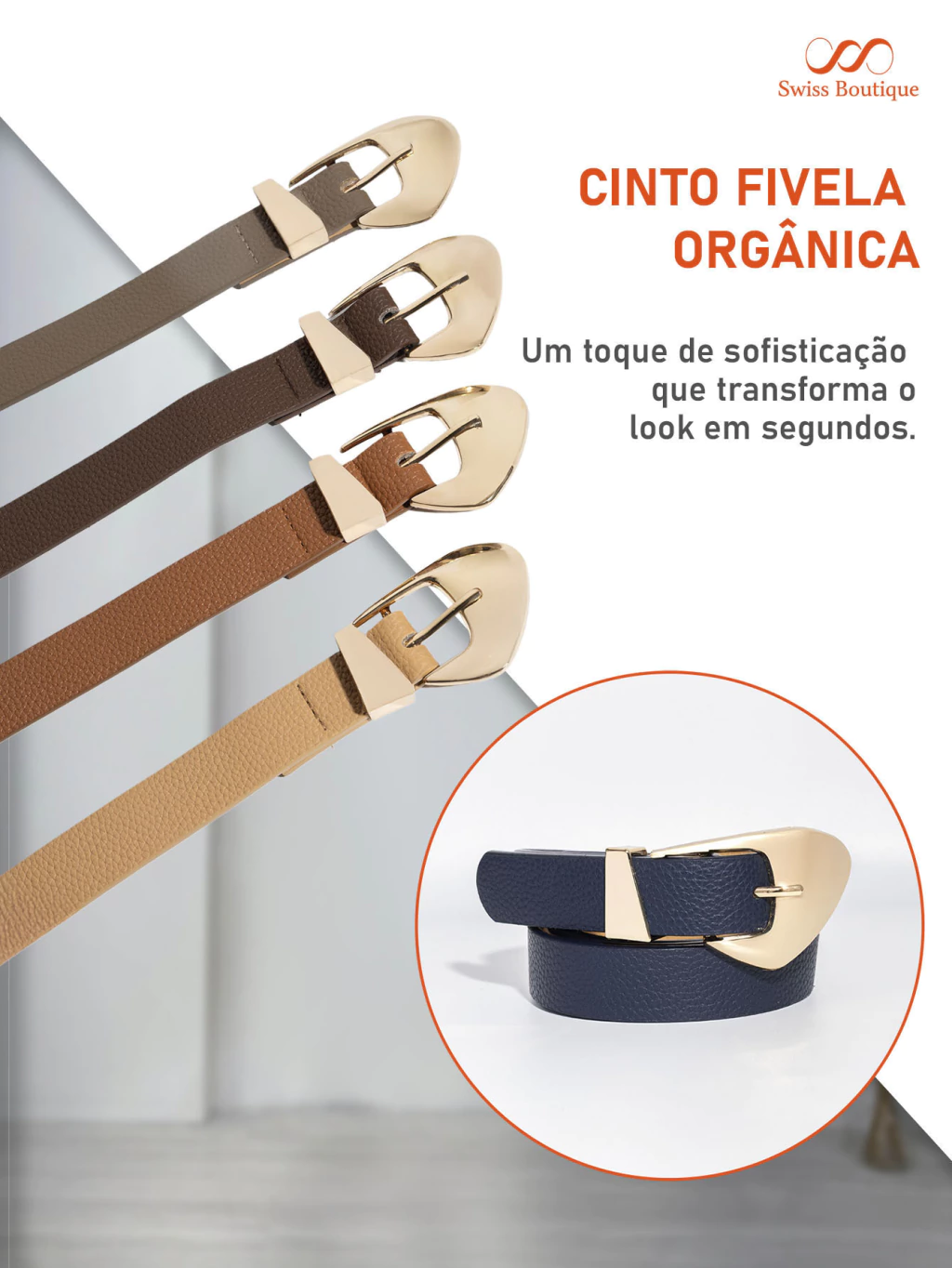 O Cinto Fivela Orgânica é a escolha perfeita para marcar presença com elegância. Com textura leve, acabamento sofisticado e fivela dourada assimétrica, ele adiciona um toque moderno e refinado a qualquer look. Ideal para valorizar a cintura com jeans, vestidos ou peças de alfaiataria, é uma opção versátil e atemporal disponível em cores curingas.