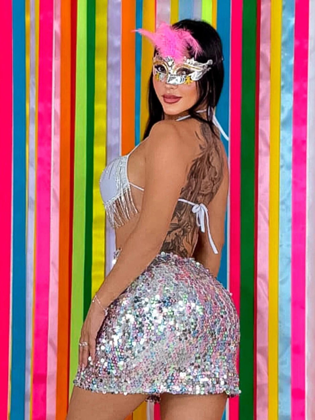 Brilho, movimento e muito glamour! O Cropped Carnaval Aro Franjas Metalizada é a escolha perfeita para quem quer fazer sucesso nos bloquinhos e festas. Com aro frontal, alças finas de amarração e franjas metalizadas que dão aquele efeito poderoso, ele é puro destaque! Disponível nas cores preto e branco, essa peça é um show à parte para aproveitar o Carnaval e brilhar como nunca!
