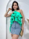 O cropped cortininha com babados é a peça ideal para destacar o visual com leveza e movimento. Confeccionado em crepe Duna premium com bojo embutido, possui alças finas ajustáveis e modelagem fluida que valoriza o colo e a cintura. Perfeito para compor looks de verão, baladas, viagens e até festivais. Combine com jeans, alfaiataria ou saias para um visual moderno e marcante.