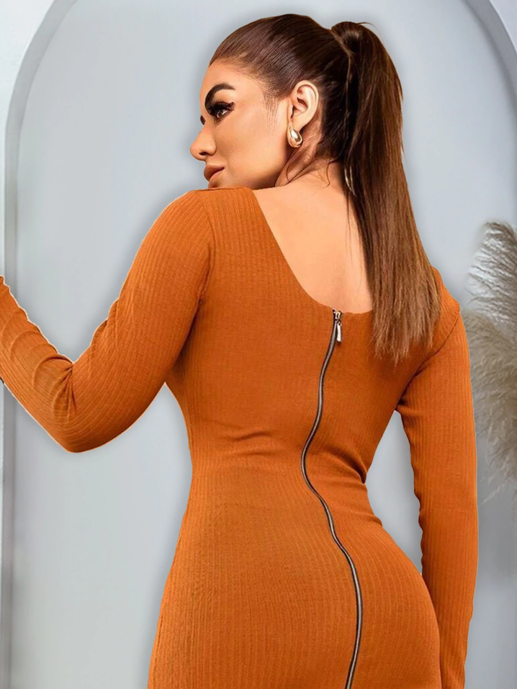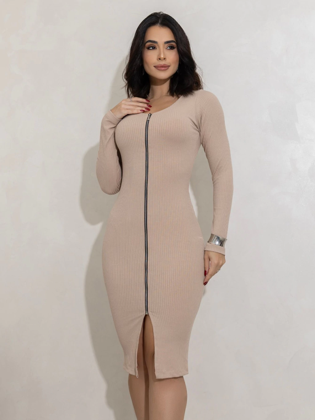 O Vestido Midi Canelado com Zíper é sinônimo de praticidade e elegância. Confeccionado em malha canelada premium, possui modelagem ajustada ao corpo e zíper funcional, que permite usar a peça com a abertura frontal ou traseira — duas propostas em um único modelo. Versátil e confortável, é ideal para produções casuais com tênis ou combinações mais sofisticadas com salto.